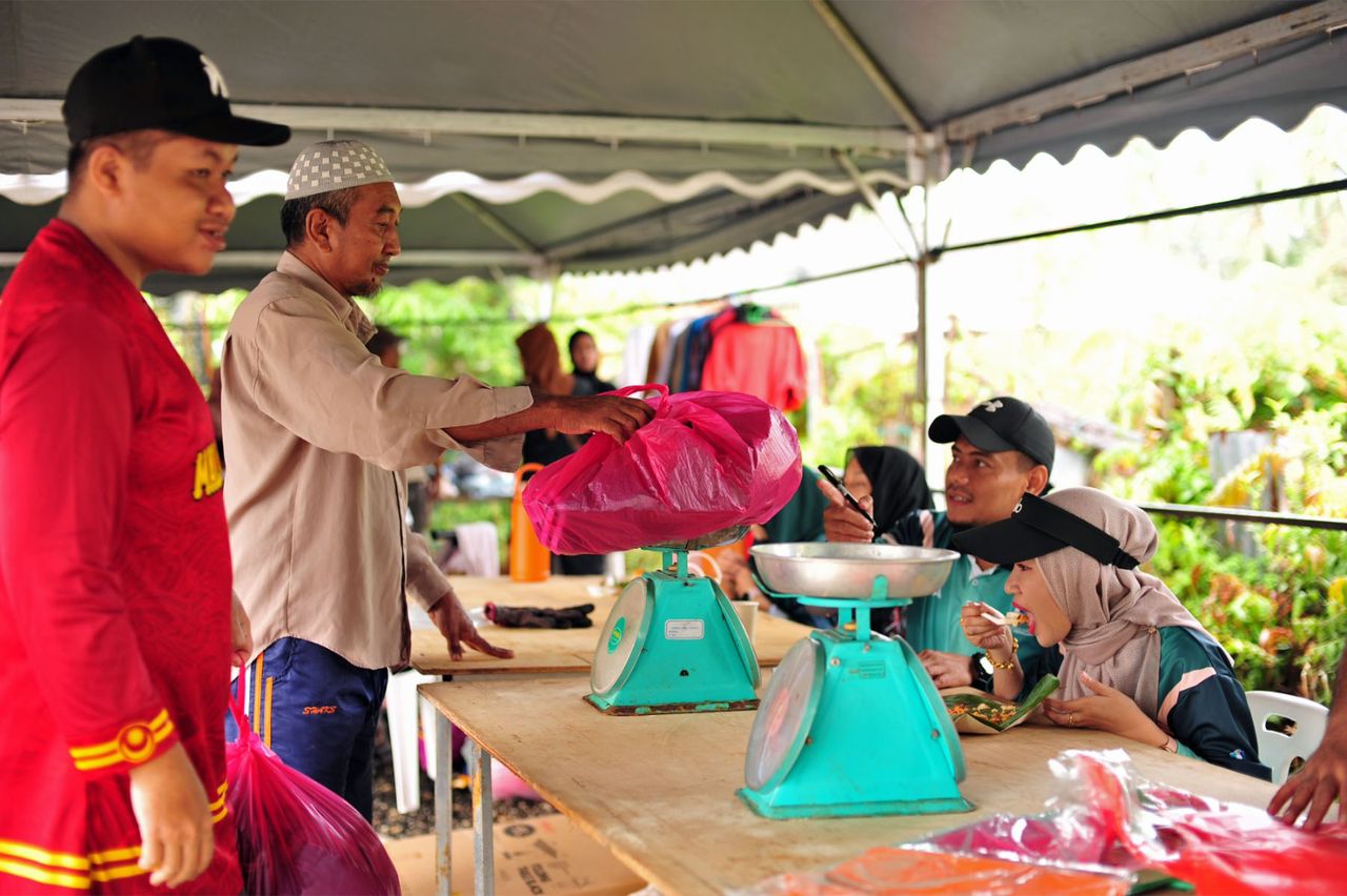Para sukarelawan memainkan peranan besar dalam memastikan kelancaran program. Mereka mengurus kaunter pendaftaran, menyusun dan mengasingkan barangan, membantu warga emas dan OKU, mengawal aliran pengunjung serta mengendalikan dokumentasi. Hasilnya, sebanyak 976 kilogram barangan berjaya diagihkan kepada para penerima.